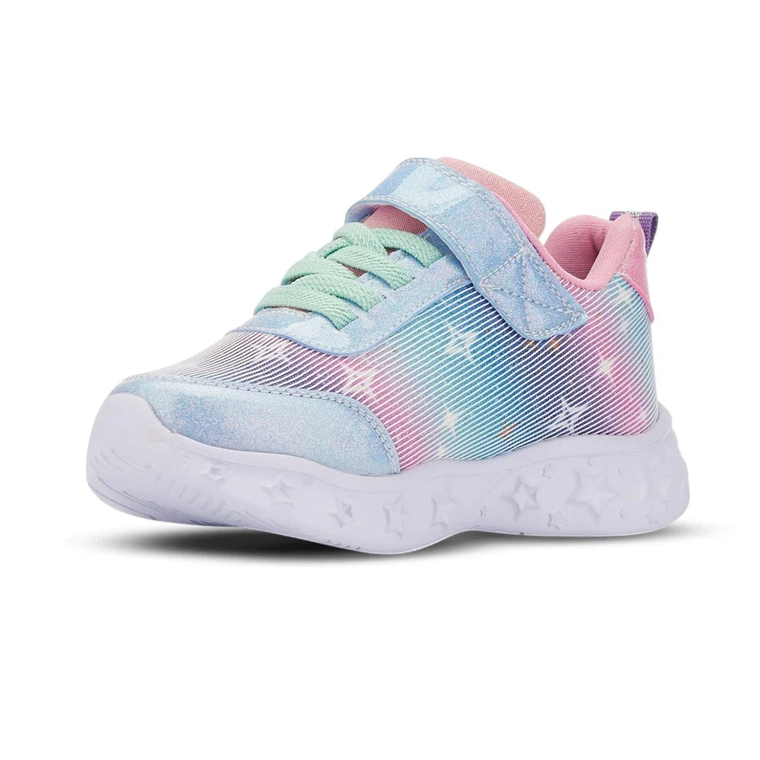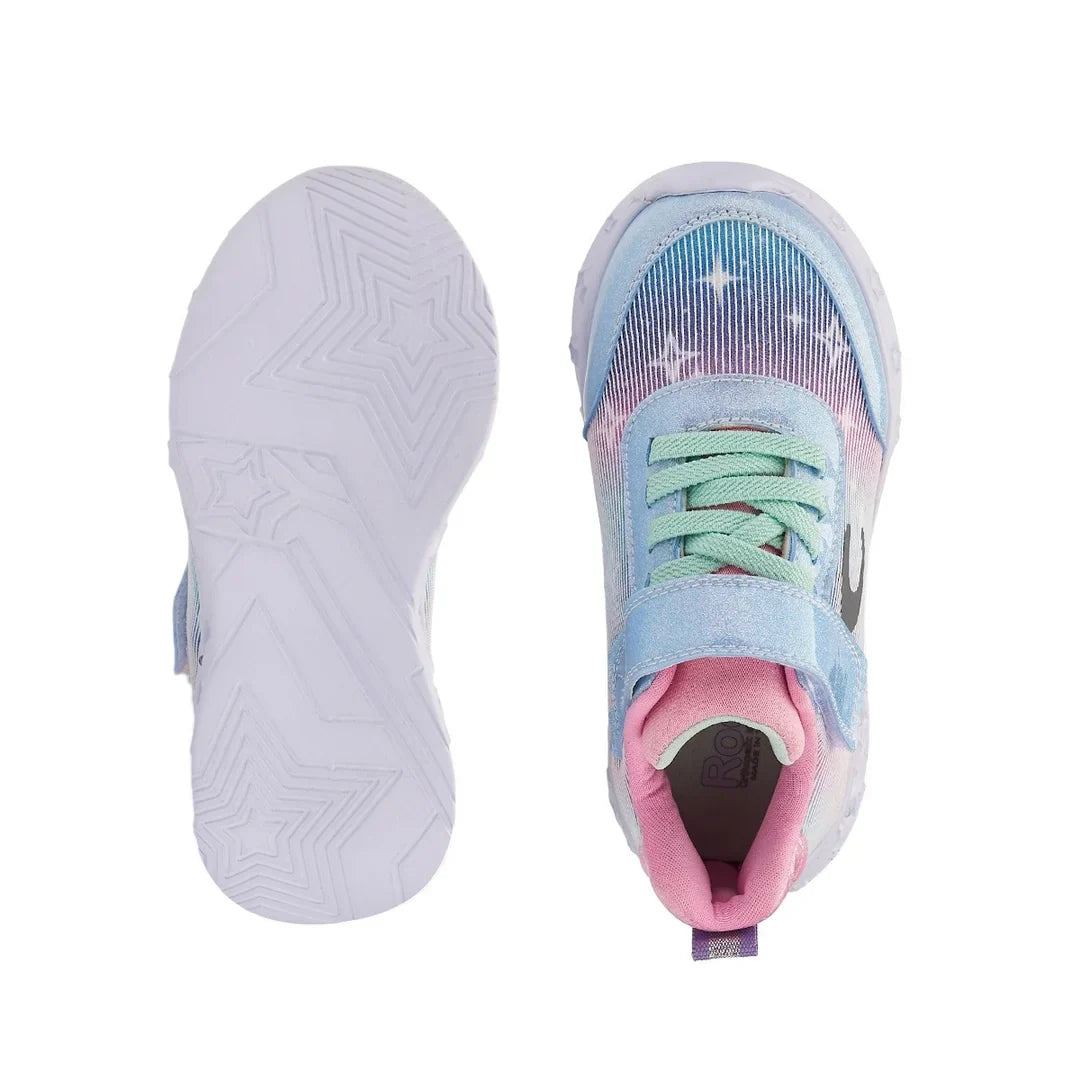 Pembe ve mavi tonlarının bir araya getirilmesiyle oluşturulan dinamik görünüm, modeli hem kız çocuk spor ayakkabı hem de genel çocuk ayakkabı kategorisinde dikkat çeken bir seçenek hâline getirir. Ürün kodu: 24001