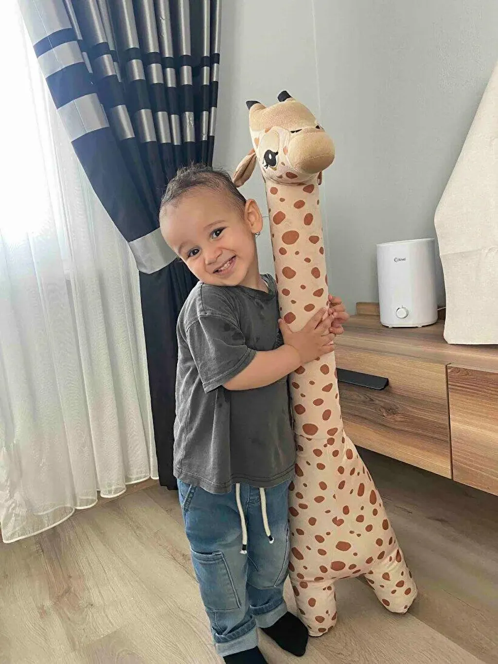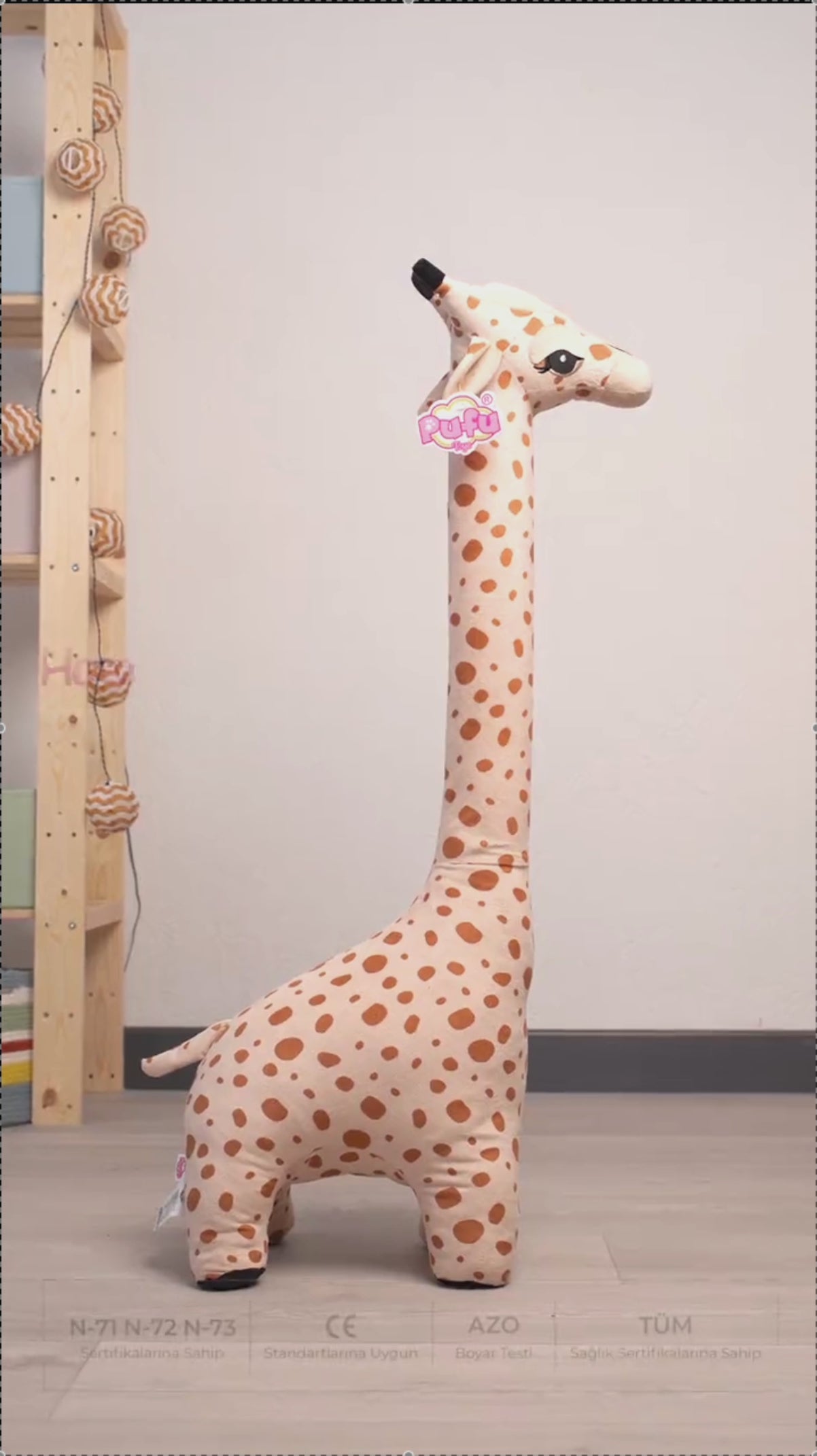 1 metrelik boyutu sayesinde, zürafa oyuncağı büyük bir peluş arkadaş ve kucaklama için idealdir.