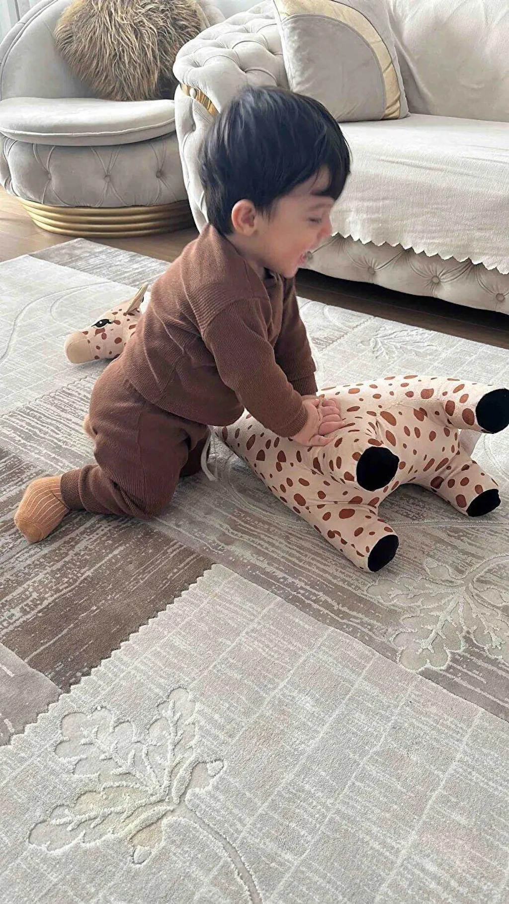 Ürün, yumuşak ve dokulu peluş kumaş ile kaplanmıştır, böylece çocukların oyun sırasında rahat hissetmelerini sağlar.
